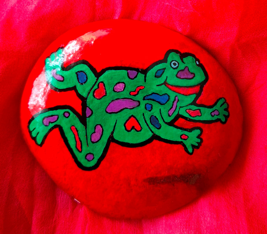 Den von Kai bemalten Stein haben wir Kevin Triplett für Marsha Weldon, der Schwester von Blaze mitgegeben.Jetzt ist er angekommen und Marsha hat uns dieses wunderschöne Foto geschickt. Es ist schön den Stein bei Blazes Stiefeln und seinem E.T. Hut zu sehen
