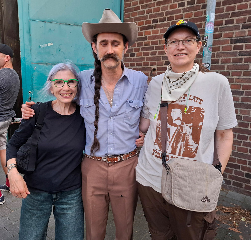 Erster Einsatz des Duxedo bei einer Lesung auf der offenen Bühne am Samstagnachmittag. Nach Carmens Einleitung las Kai ein paar Textpassagen aus unserem Buch und erklärte Blazes Duct Tape Fetisch anhand des Duxedo.Vielen Dank an Peter Wroblewski von den Country & Western Friends Kötz für die Möglichkeit das Buch "Blaze Foley - Ein Außenseiter, der zur Legende wurde vorzustellen.